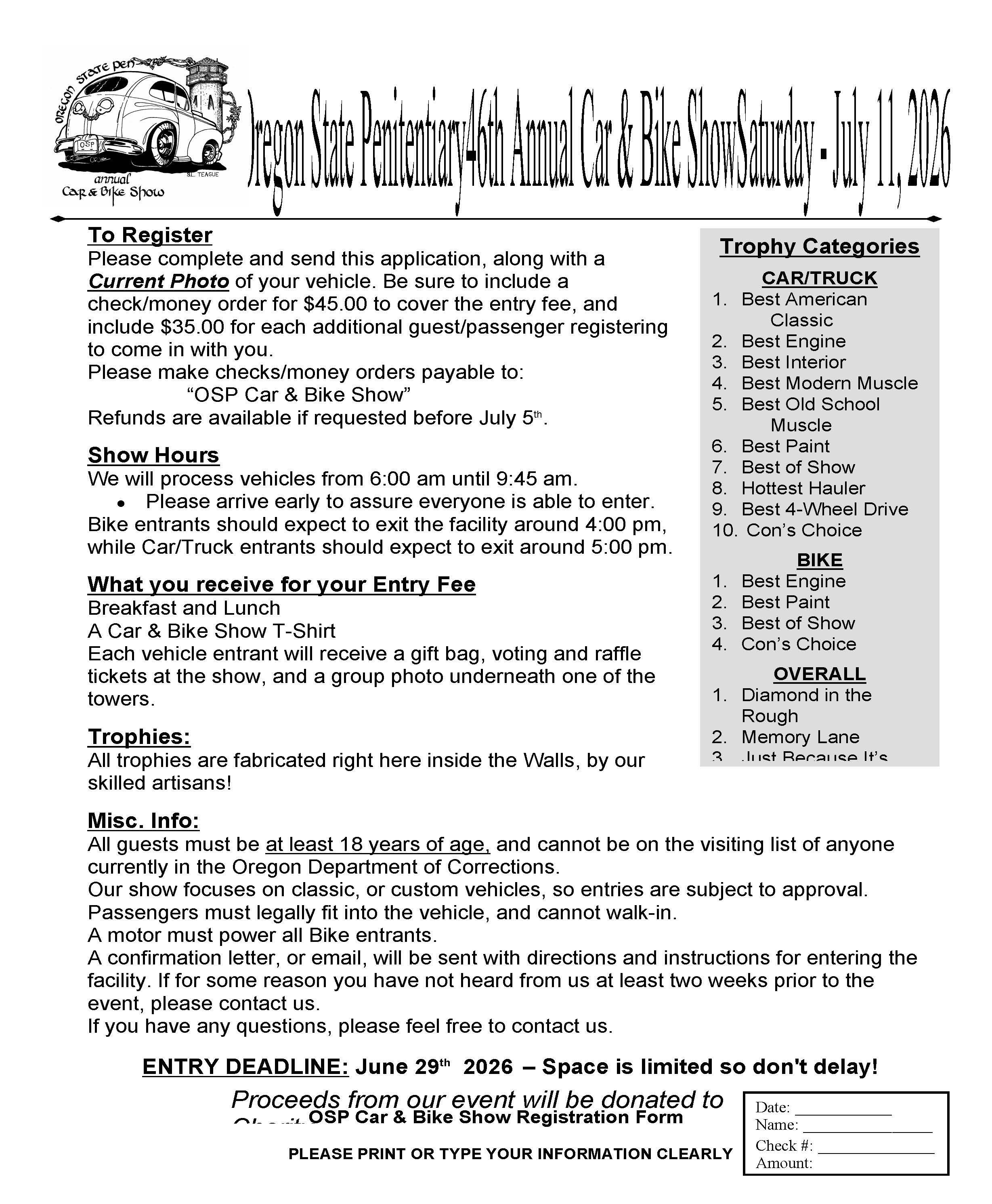 Registration: $45.00 Plus $35.00 per passenger